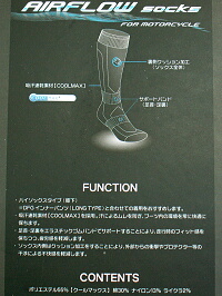 吸汗速乾素材【 COOLMAX 】を採用し、ブーツ内のムレやベタつきよる不快感を軽減。また、外部からの衝撃やプロテクター等の干渉を防ぐ為、ソックス内側にはクッション加工が施されている。