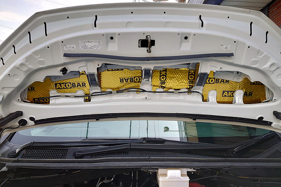 この後、ボンネットを閉めた時に明らかに違いが。施工前は「ガチャン」という感じの安っぽい音だったのが「ドンッ」という感じの重厚感ある響きに変わったのだ。