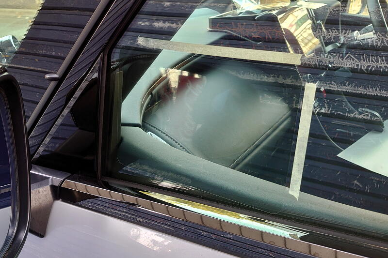 運転席側も同様にして貼っていきますが、助手席側より運転席に近いので位置決めがけっこうシビア↓