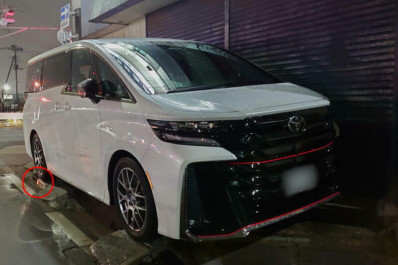 私がなぜここまで雨の日の後方視界に拘るのかというと、前回の記事でも紹介している仕事場の駐車場にバックで入れる際、ドアミラーを見ながら「目印」に右後輪を合わせるようにしているから。