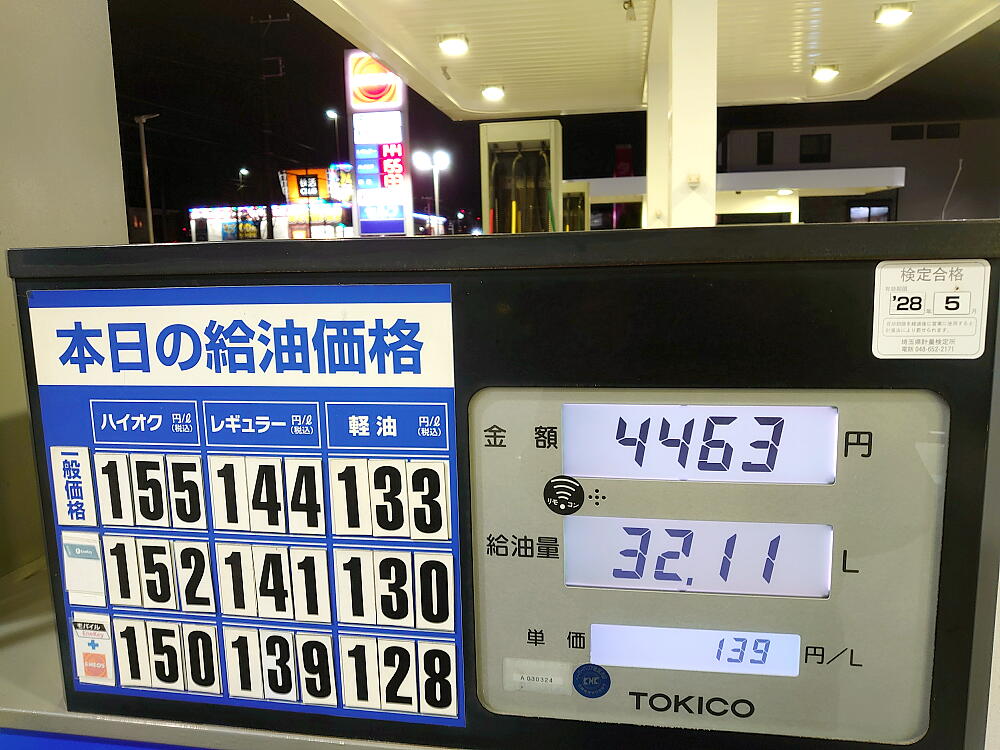 実は年末の12月30日にも満タン給油していたのだけど、年末年始のドタバタで記事にする余裕がなかったがその時も今回と同じ139円/Lだった。