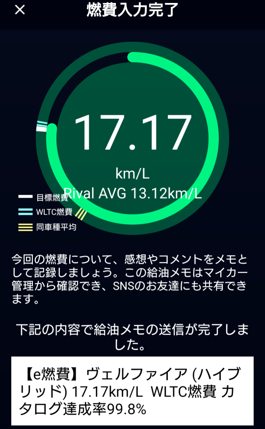 17.17km/Lと、前回の18.13km/Lから約5%悪化。