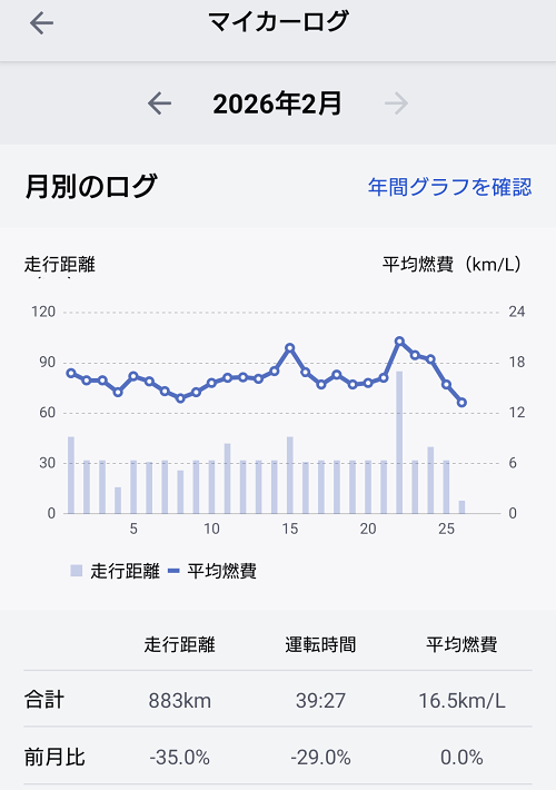 まぁ、一日の中で朝一番の燃費がだいたい最悪なので、今月の平均燃費は先月の16.5km/Lを超えることができそうかな???
