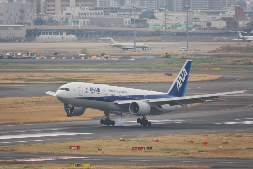 ANAのB777がランディング。やはり背景がイマイチかな‥‥‥↓