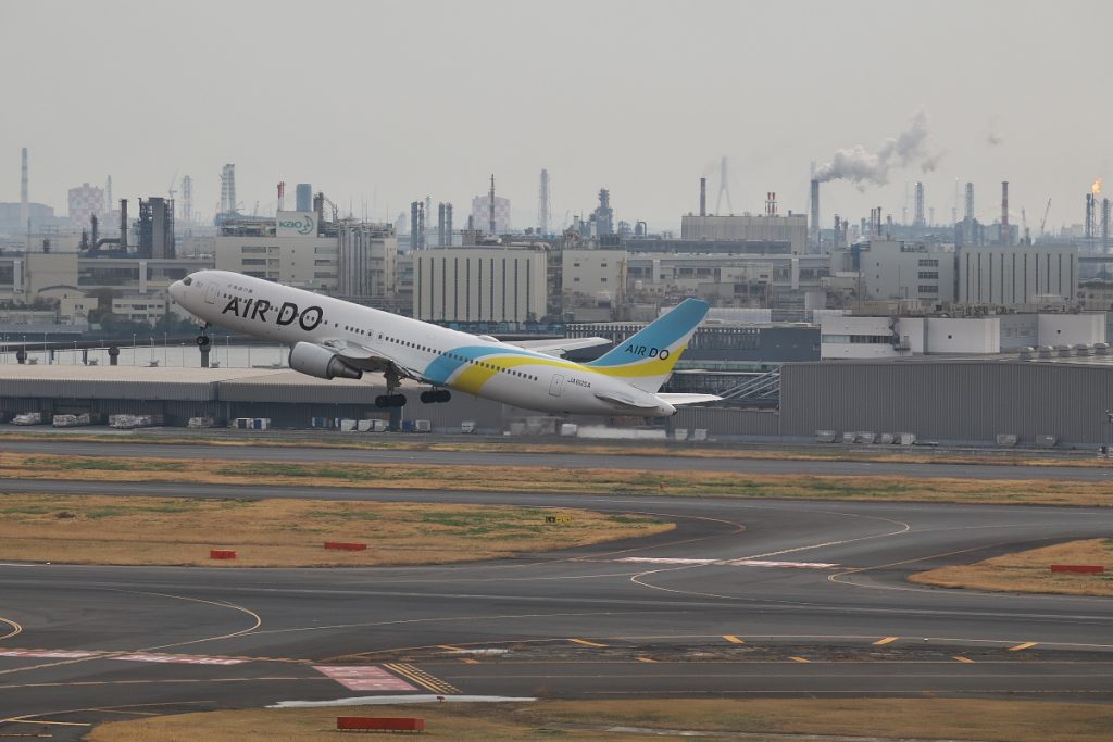 AIR DOのB767が離陸。工場群バックも悪くはないが‥‥‥↓