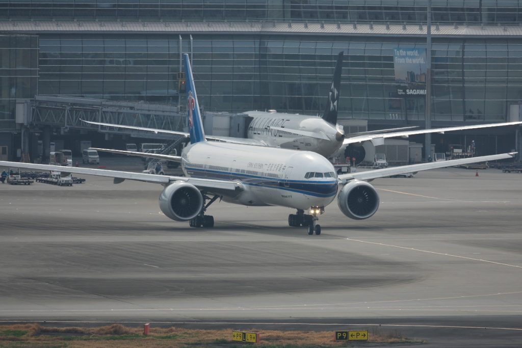 その第3ターミナルの方には中国南方航空のB777や、その奥にSTARALLIANCE仕様のANAのB787も見える↓