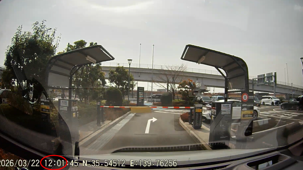 ↑入庫時間は12時1分。出庫時に時間を余らせたりしないようこの時刻を覚えておくことが重要だ。
