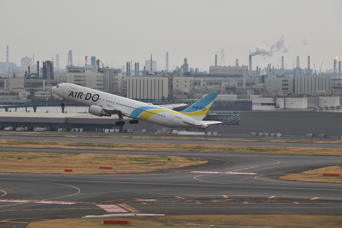 AIR DOのB767が離陸。工場群バックも悪くはないが‥‥‥↓