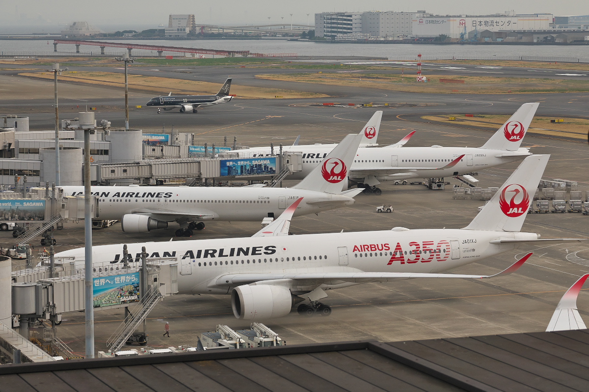 ↑このA350文字入りの機体番号JA01XJは、2019年6月に納められたA350のJAL初号機。後ろの方に写っているスターフライヤーのA320がオモチャのように見える。
