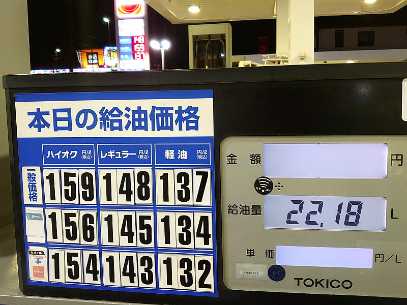いつものGSでは今日の夕方にはもう値下げされていたので、夜に給油してきた。