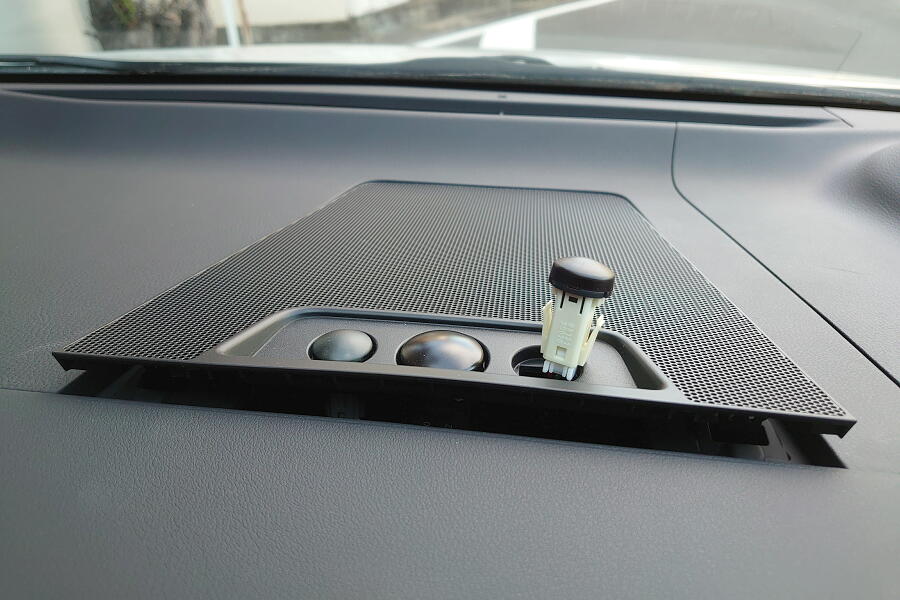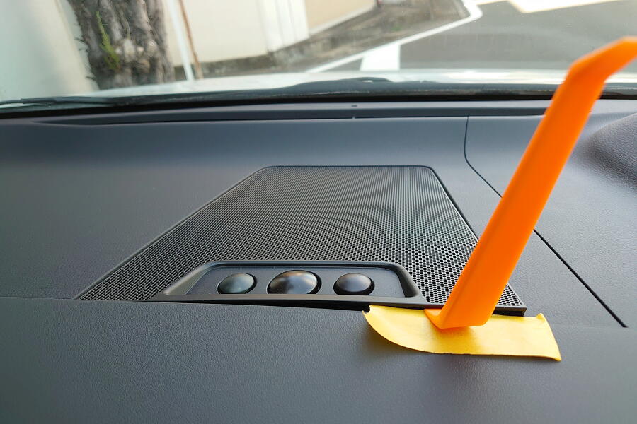 まずはダッシュボード中央のセンサーが三つ並ぶパネルを付属のヘラで取り外す。