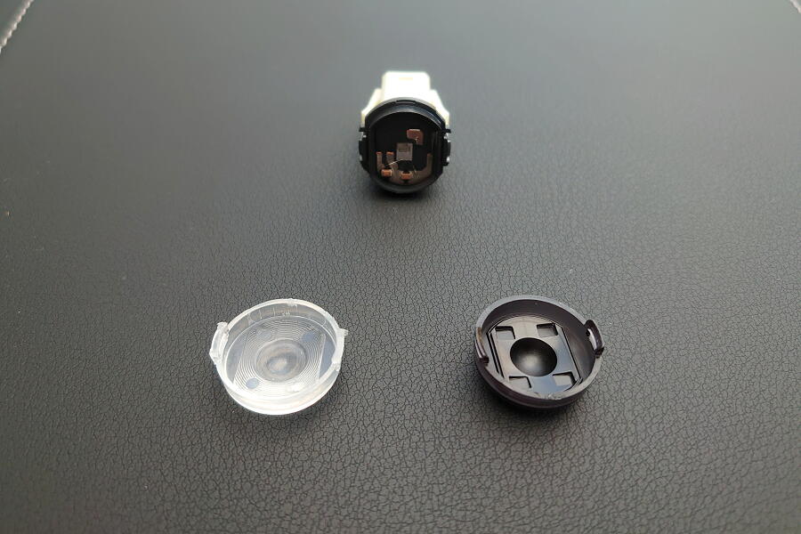 ↑上にあるのがセンサー本体。右の黒っぽいのがノーマルのセンサーカバーで、左が今回付け替えるセンサーカバー。