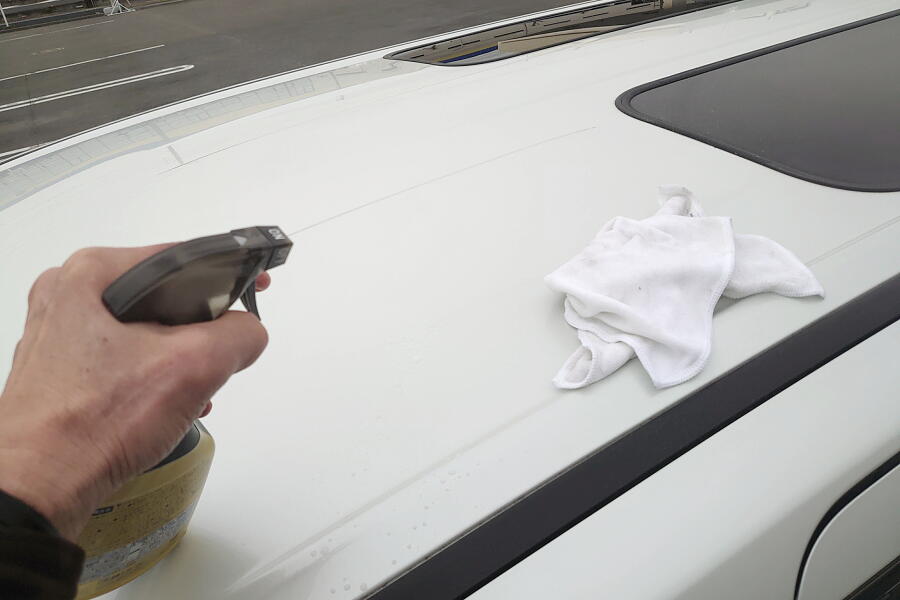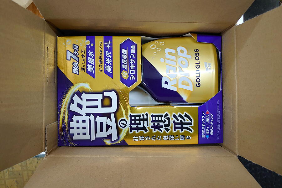 スプレーして拭き上げるだけで抜群の撥水効果と「ツルスベ」な仕上がりが得られるという優れモノ。しかも洗車後に濡れたままスプレーして拭き上げるだけで作業完了だと‥‥‥!?!? こういうのが欲しかったんだよなぁ‥‥‥と即ポチリ。翌日に届いた↓