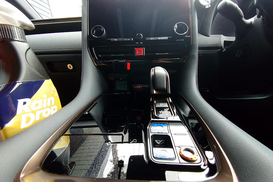翌日内装にも施工。ナビ画面とコンソールのピアノブラック面に施工した↓