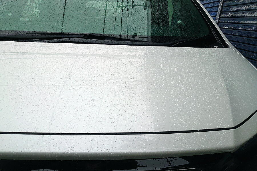 雨量が少ないので画像でその効果を表現するのは難しいのですが、時折ボンネットの上を水滴が転がり落ちていて、撥水効果はかなり高いようです。