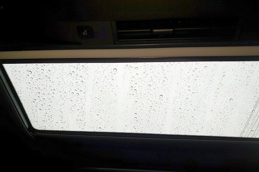 ↑車内からムーンルーフを見るとこんな感じ。これなら走っていれば水滴は吹き飛びそうですね。
