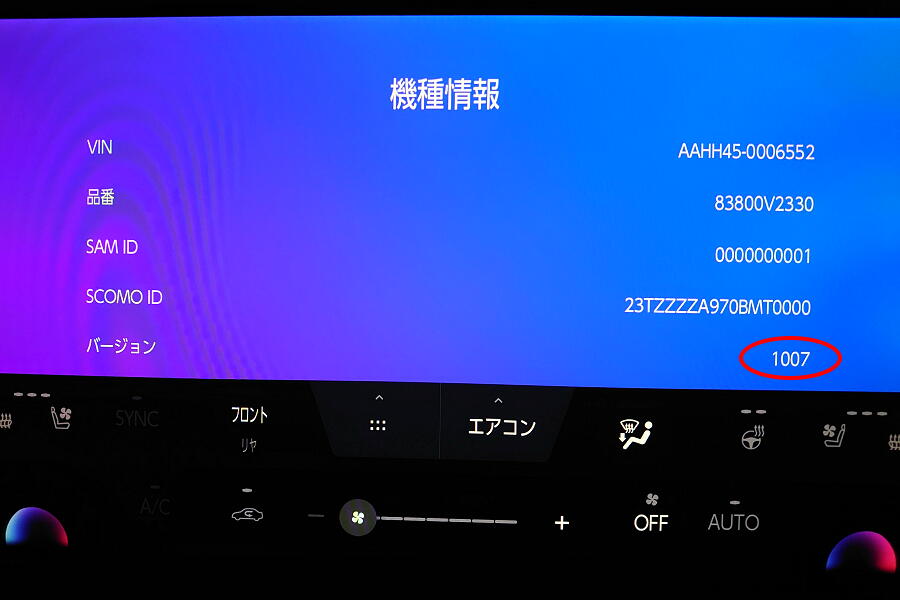 さっそく車両のDA画面の設定→ソフトウェア更新→機種情報と開き、下にスクロールする。