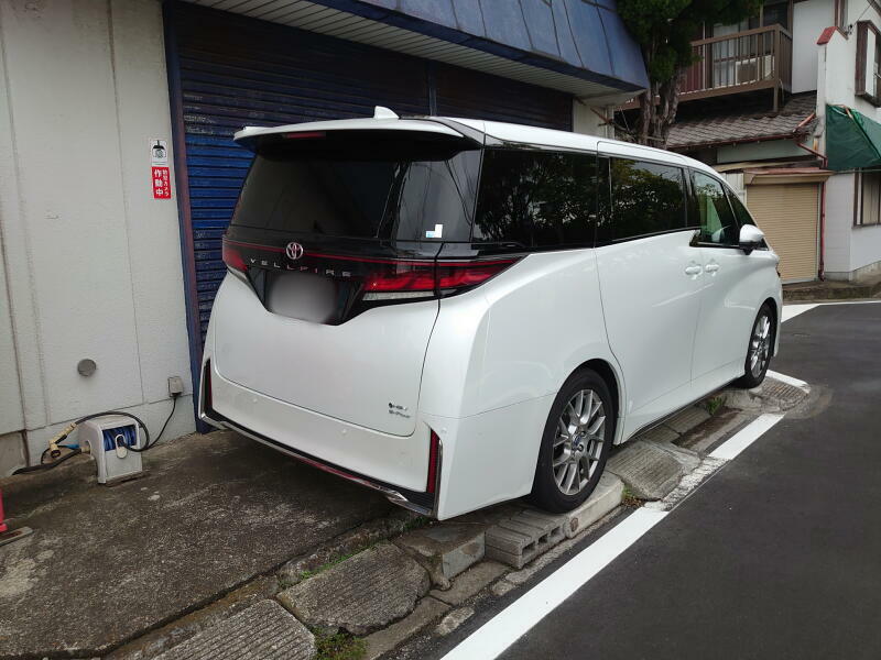 この駐車場所は段差があったり木があったり、バックでハンドルを切りながらピンポイントに停めなければならないので、このズレが少し気になっていたところ。
