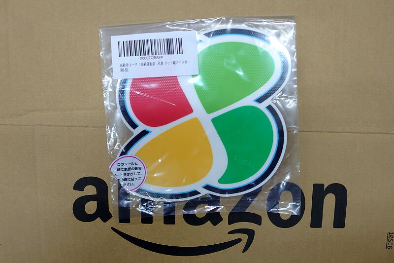 というわけで、義務ではないが「70歳以上の者は『加齢に加齢に伴って生ずる身体の機能の低下が自動車の運転に影響を及ぼすおそれがある』場合は『高齢者運転標識』をつけて普通自動車を運転するように努めなければならない」と道路交通法で定められているので、またまたAmazonで探してみた結果、ウィンドウの内側から貼れるこの商品をポチりました↓
