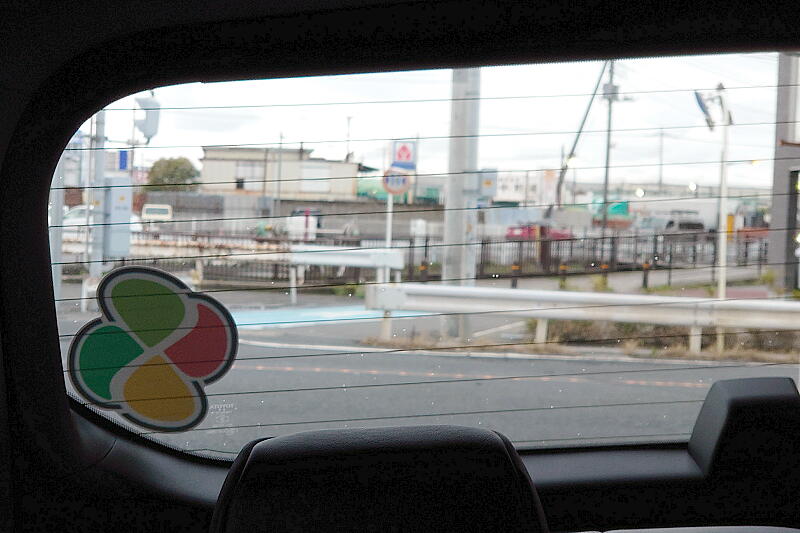 スモークガラス越しなので目立ち過ぎずGood。欲を言えばもうちょっと外側に貼りたいんだけど、この位置が限界なので我慢するか。