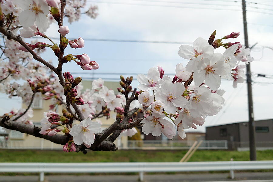 やっと春らしい気候になって、仕事場の近くのソメイヨシノもほぼ満開↓
