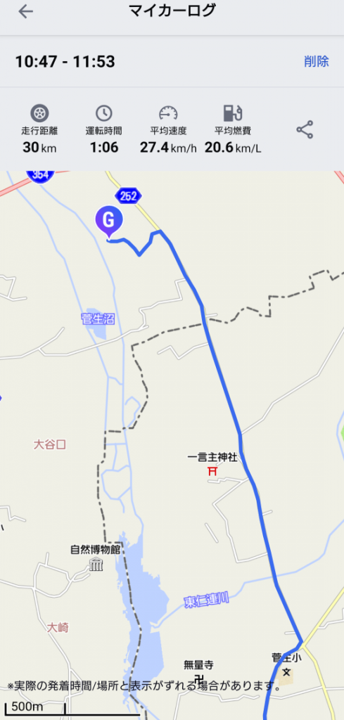 ↑このマップの下にあるのが菅生沼の下沼。上のGマークの地点がクルマを停めた駐車場で、「菅生沼」と表示されているのが中沼で、上沼は表示されていない。