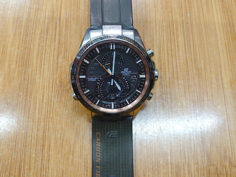 この地味なデザインはとても気に入っていて、今でもフォーマルな装い用に取ってあるのだけど、アウトドアシーンには適していないので同じCASIOの「エディフィス」というブランドのこれを購入↓