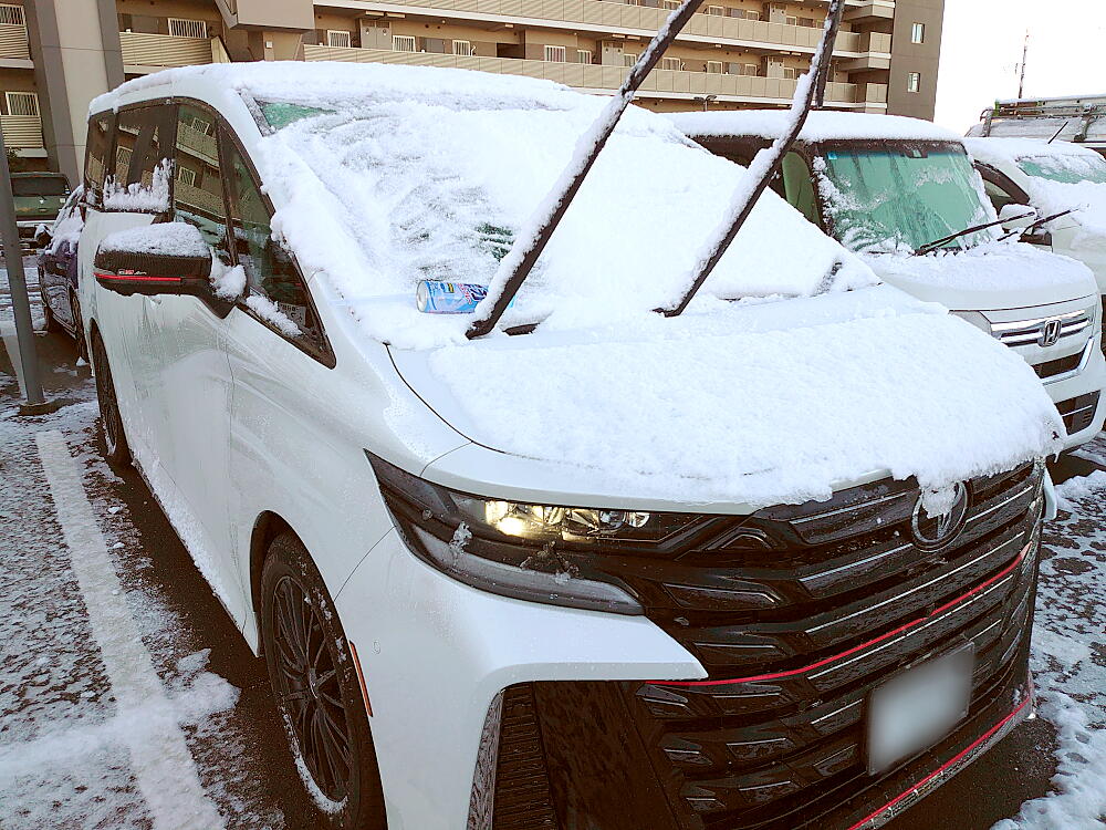 フロントガラスの雪がガチガチに凍結していて、エンジンをかけてデフロスターを作動させたものの、融けるまで10分程度かかってしまった。