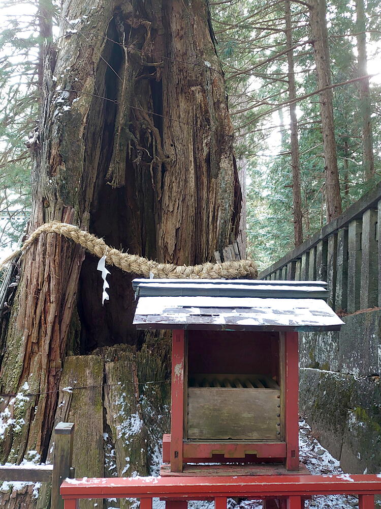 宝塔の奥に見えるのが今回の最終目的地である「叶杉」。