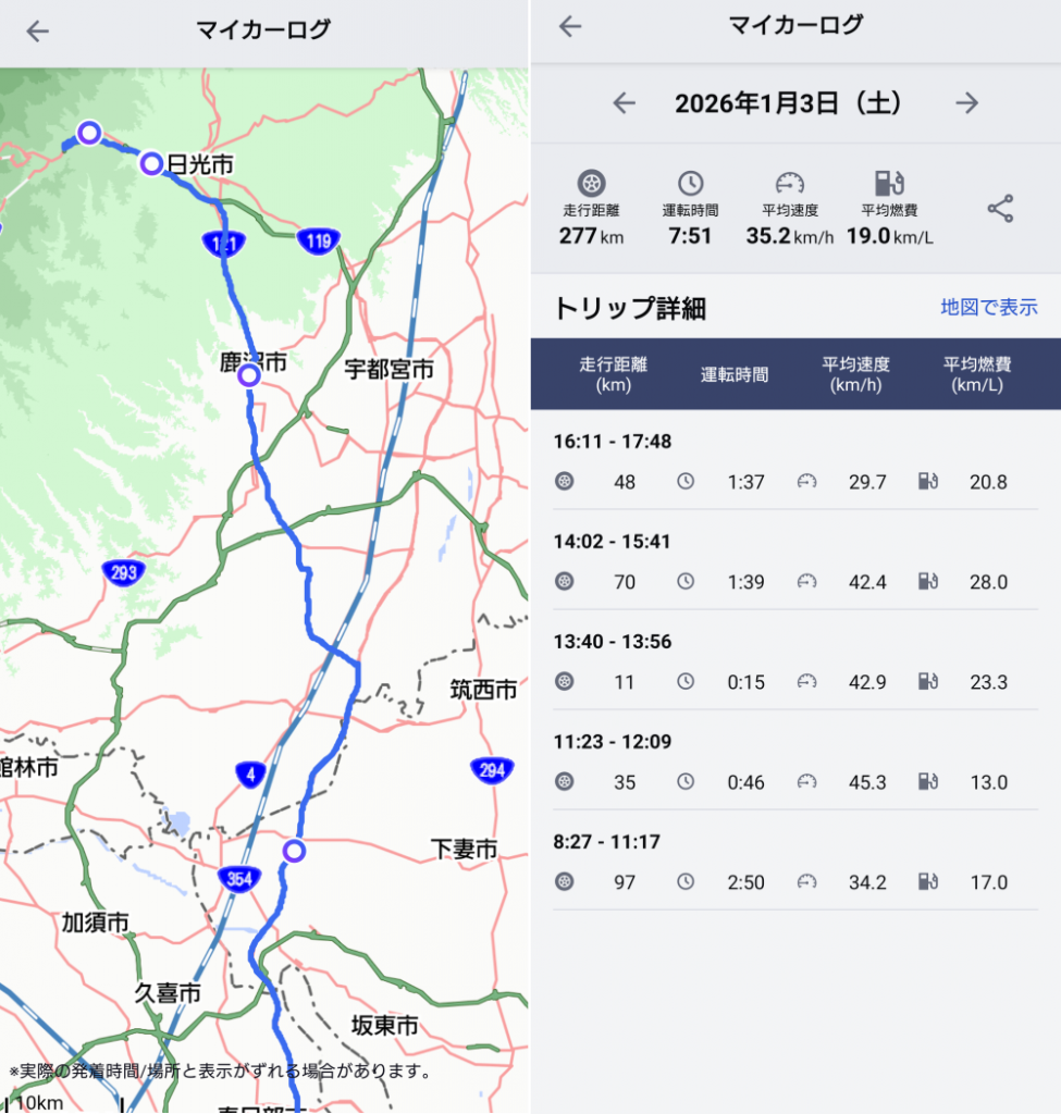 この日のマイカーログ↓