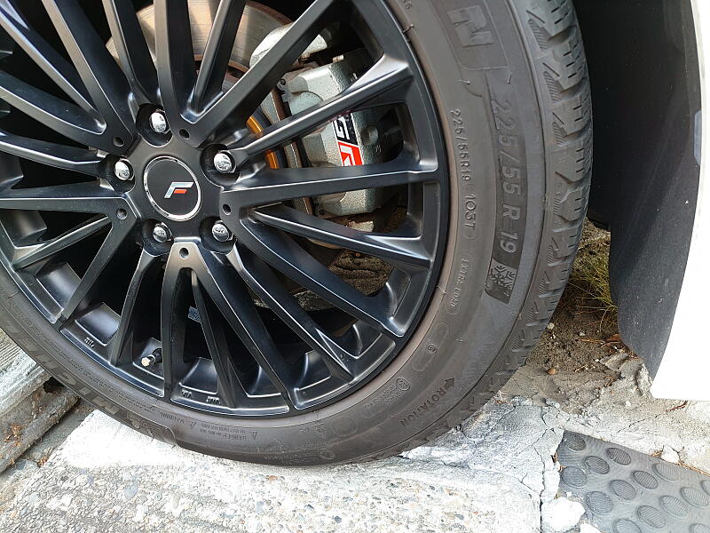 ↑夏タイヤセットの「レフィナーダ モーション3」では全然目立たなかったゴールドのスペーサーとキャリパーのGRステッカーがこのホイールでは映えました。
